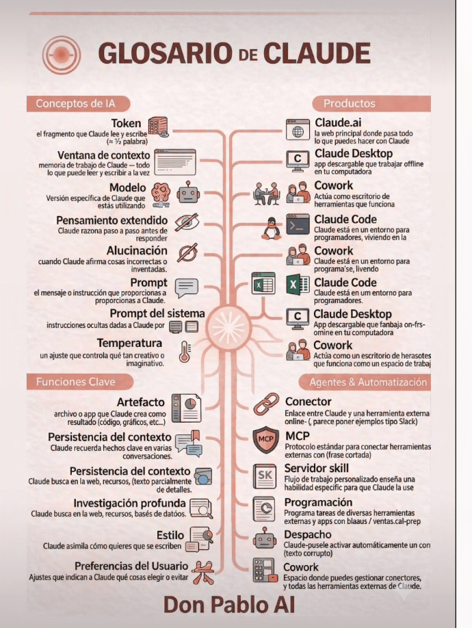 - Conector: Enlace entre Claude y herramientas externas (como Slack o Google Drive) (p. 1).